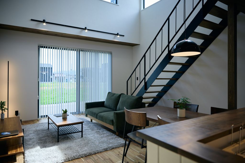 ・スチール階段と大きな吹抜けが表現する、圧倒的開放感。