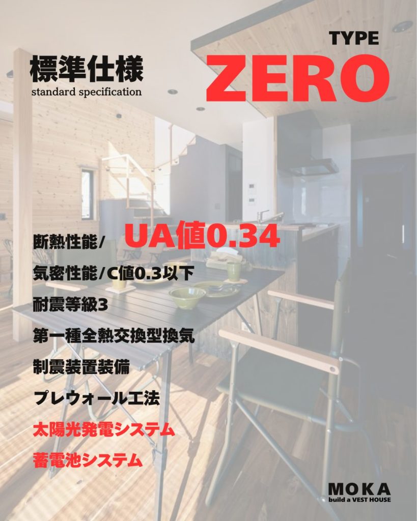 『一年間で使用するエネルギーを【±0】にすることのできる住宅のこと。構造体の断熱性能や、電気・水まわり設備の省エネルギー性能を上げ、太陽光発電等の再生エネルギーを使用して、日常で使うエネルギーを創ることで実現できます』